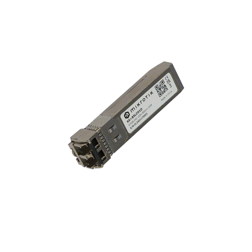 Un módulo SFP 1.25G, SFP+ 10G y SFP28 25G rentable para distancias más cortas: hasta 100 metros en modo full-duplex de 25 Gigabit. Su compatibilidad con diferentes velocidades lo convierten en una solución versátil para diversas configuraciones de cualquier escala, incluidos los más vendidos como el RB5009, el CCR2116, la serie netPower o una variedad de conmutadores CRS y CSS.